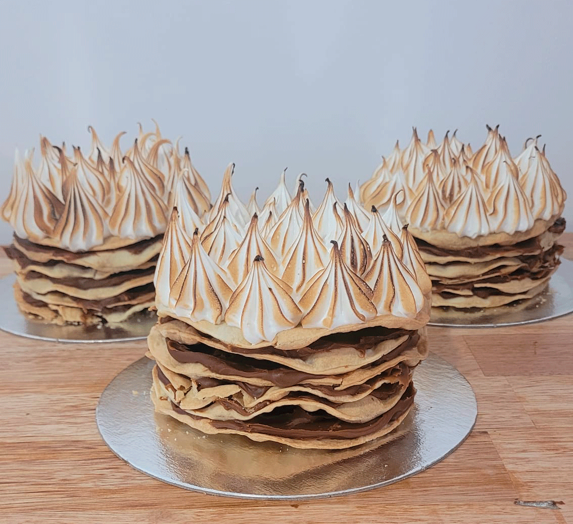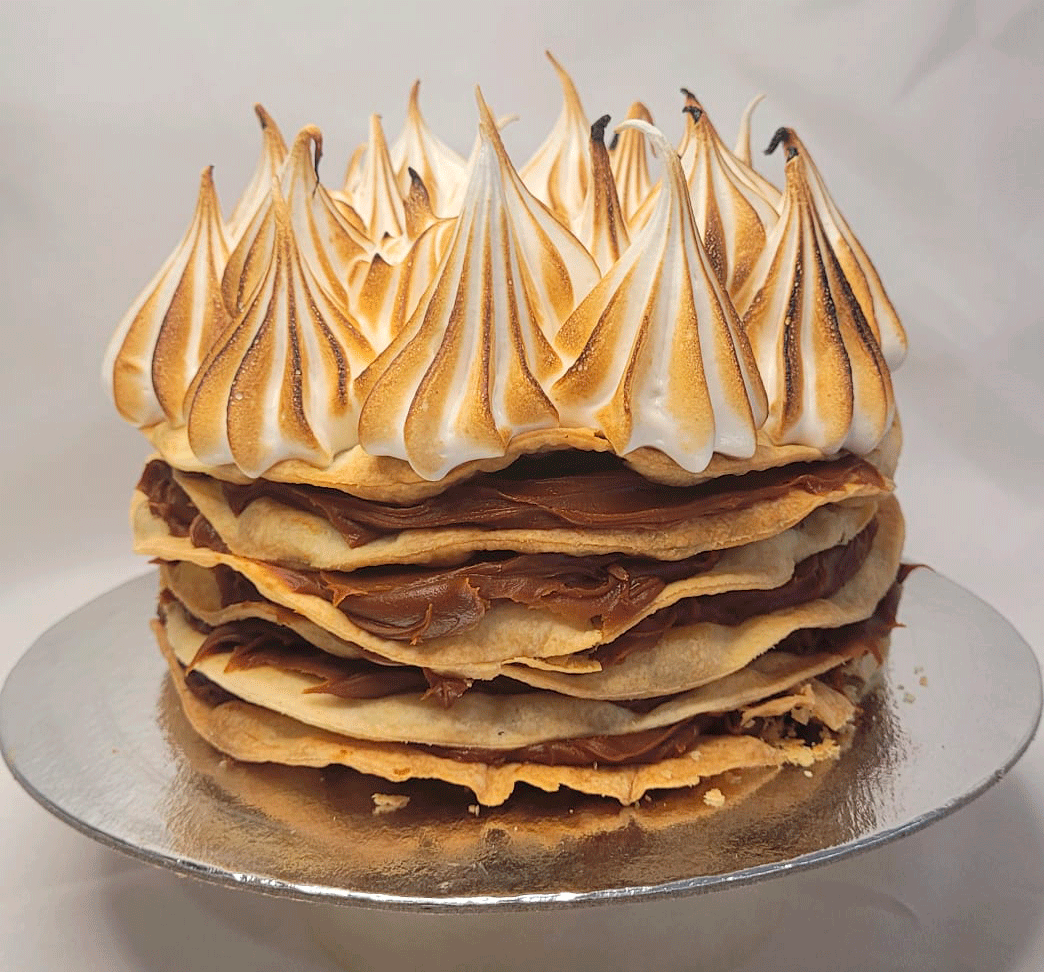 Masa fina y crocante intercalado con el mejor dulce de leche entre capa y capa.